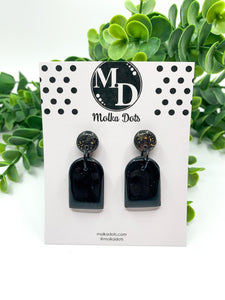 Basics *STUD ONLY* Black Circle and Arch Dangle Earrings (#994)