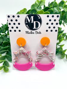 Halloween *STUD ONLY* Ghosts, Pumpkins & Stars Circle and Wiggle Donut Dangle Earrings (#984)