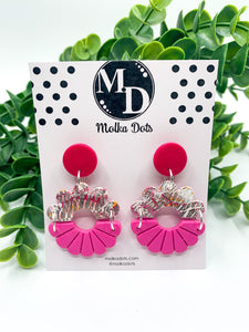 Mish Mash Marble *STUD ONLY* Circle and Flower Dangle Earrings (#012)